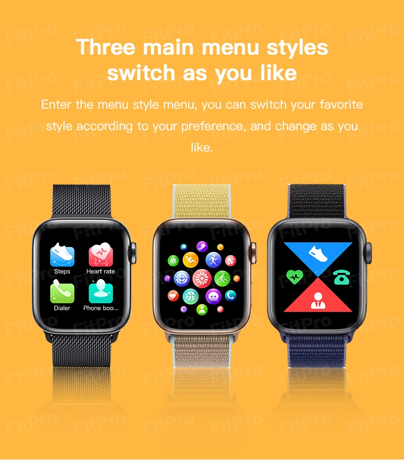 Suporte 1. tela sensível ao toque de 69 polegadas fulll, chamada bluetooth, freqüência cardíaca, muti-modos de esportes, troca de cinta de 44mm, música bluetooth, pode costumes assistir rostos.
